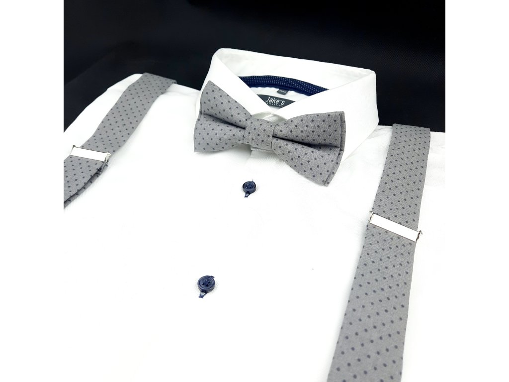 Šedý Bodkovaný Set Motýlik a Traky