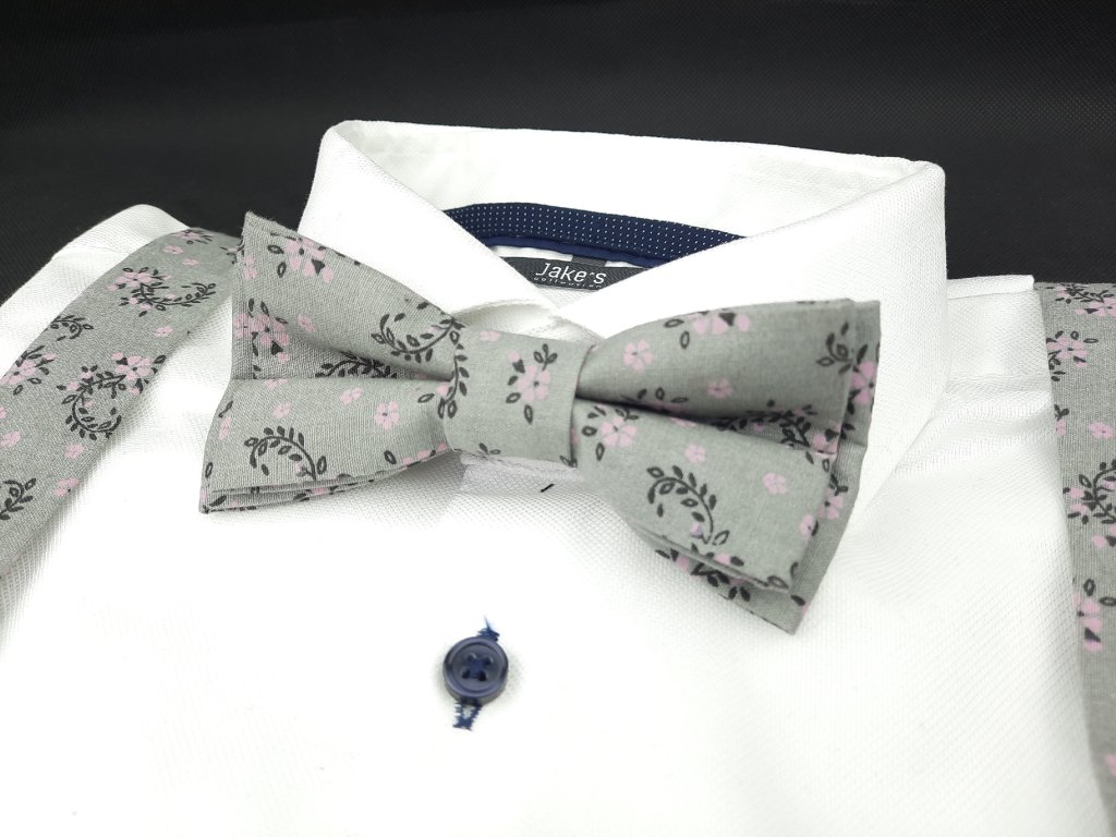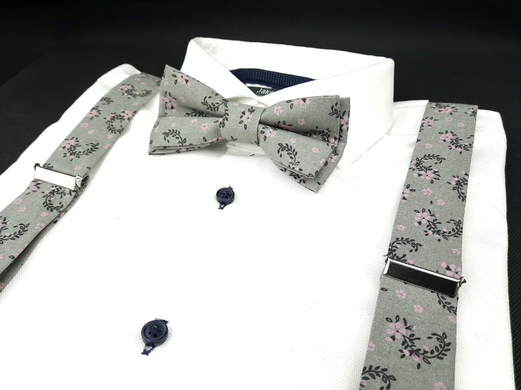 Pánsky set motýlik a traky | Sivý základ s kvetovaným vzorom pre moderný a sofistikovaný štýl