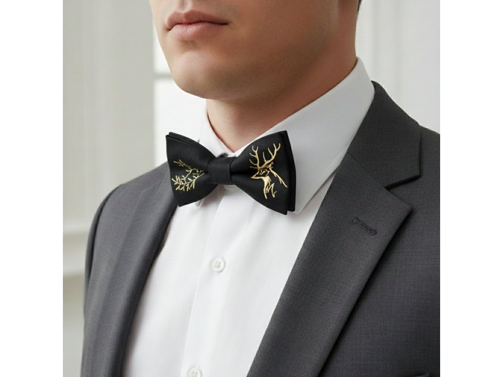 Elegantný, bavlnený, pánsky, vyšívaný motýlik v poľovníckom štýle. Dokonale dotvorí každý formálny outfit. Vhodný na slávnostné príležitosti, alebo ako darček. Je vybavený kvalitným sťahovacím zapínaním, ktoré si ľahko upravíte podľa veľkosti krku.