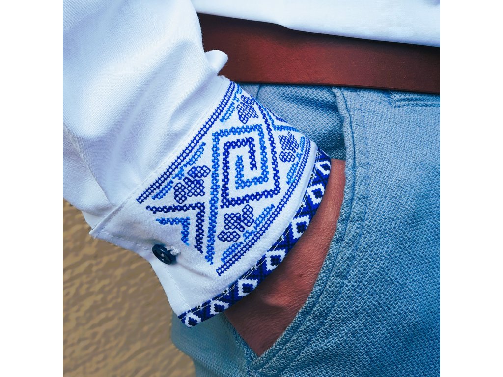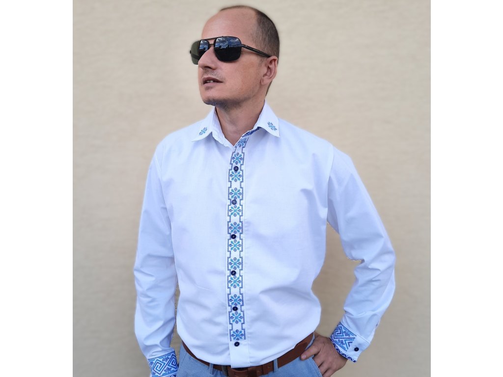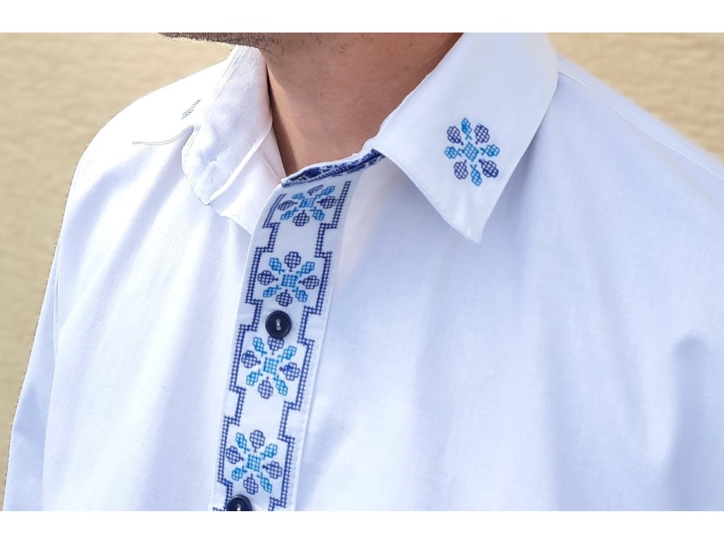S touto pánskou bielou folklórnou košeľou s modrou výšivkou budete vyzerať dôstojne, elegantne a jedinečne. Objednajte ešte dnes a doplňte svoj šatník o tento výnimočný kúsok, ktorý je viac než len oblečením – je to prejav vášho vzťahu k tradícii a dobrej štýlu.