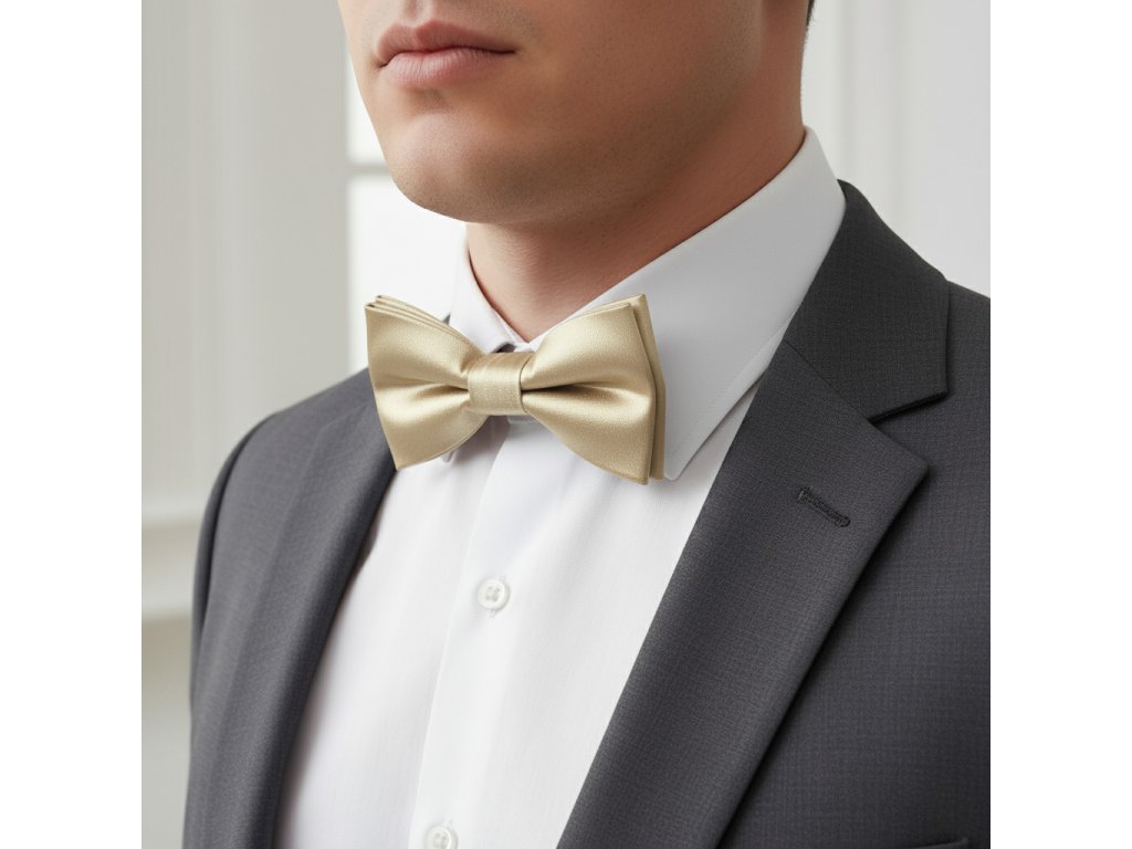 Elegantný Lesklý Saténový Motýlik Zlatý
